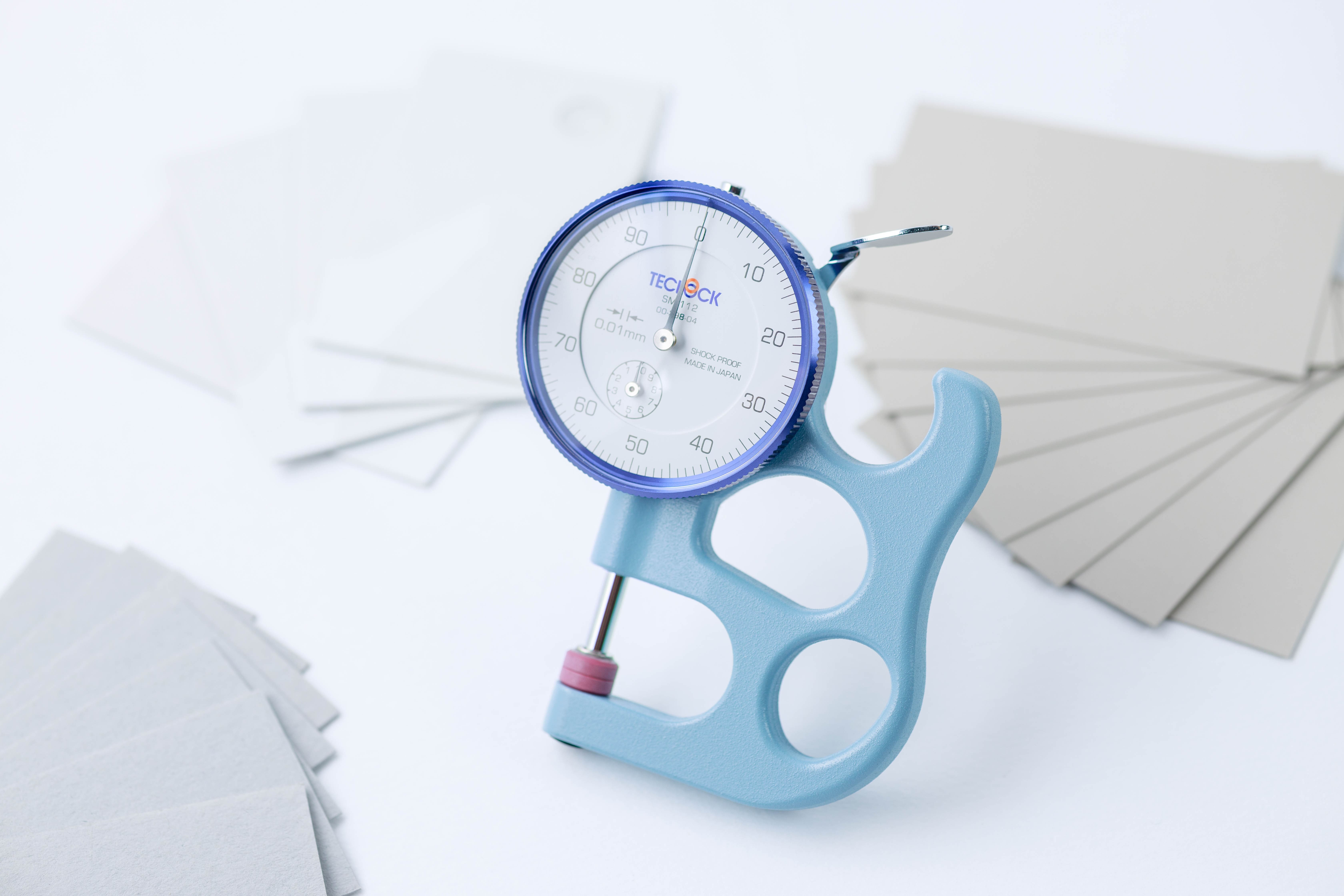 量紙器又稱測厚儀,是印刷業中常用的一種量測工具,主要用於測量紙張、板材、薄膜、皮革、塑料板、金屬板等各種材料的厚度測量。